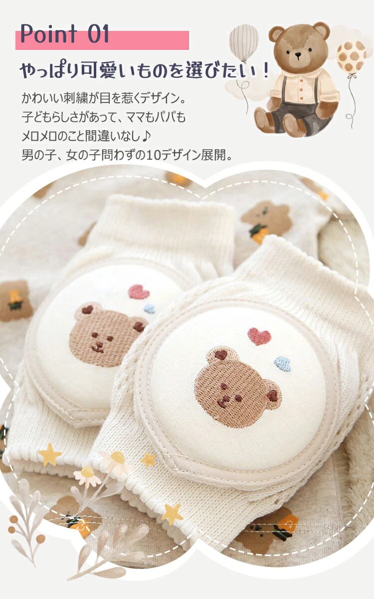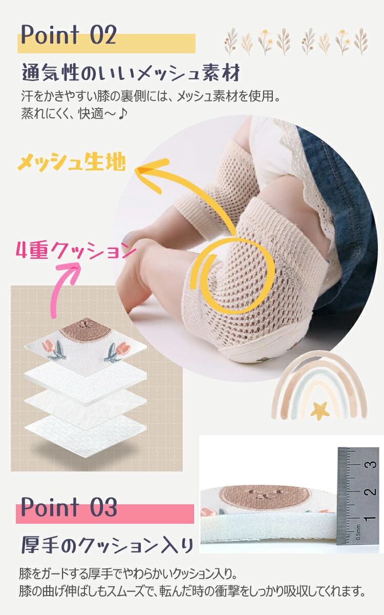 ベビー 膝パッド 膝あて ニーパッド 膝サポーター ひざあて ひざ当て 赤ちゃん 子供 キッズ メッシュ 通気性 コットン ハイハイ 掴まり立ち 刺? かわいい おしゃれ 男の子 女の子 くま うさぎ 花 出産祝い ギフト プレゼント