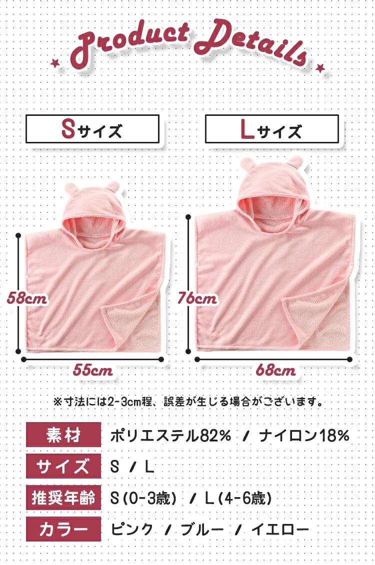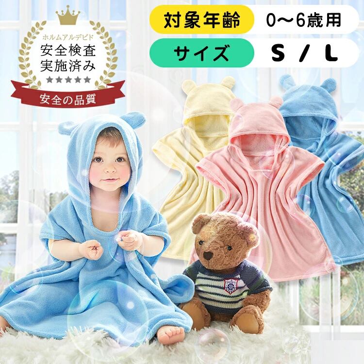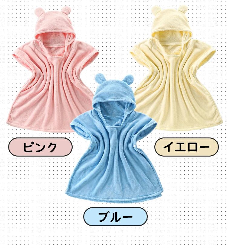 キッズ ベビー バスローブ バスタオル 赤ちゃん バスポンチョ ポンチョ 出産祝い 男の子 女の子 S L キッズバスローブ 子供用 プール タオル ふわふわ 吸水速乾 かわいい プレゼント ギフト ブルー ピンク イエロー