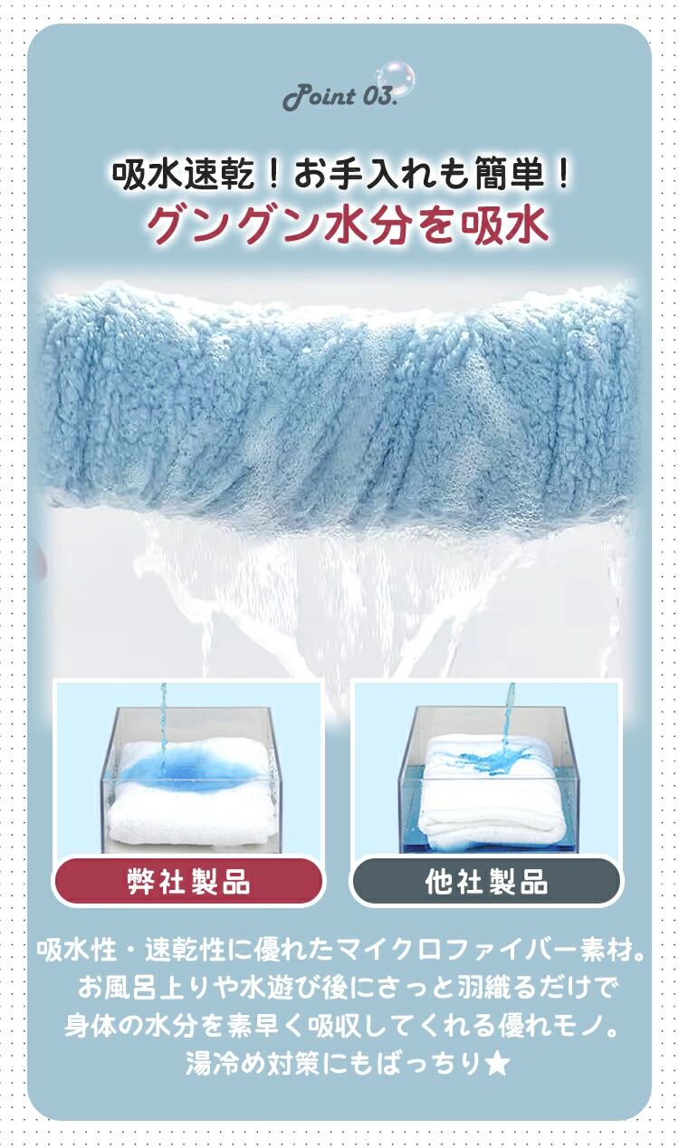 - 吸水性・速乾性に優れたマイクロファイバー素材を採用!お手入れも簡単!
