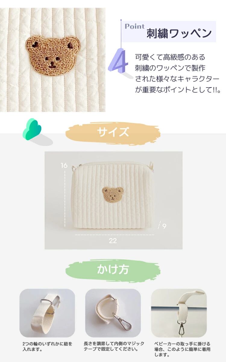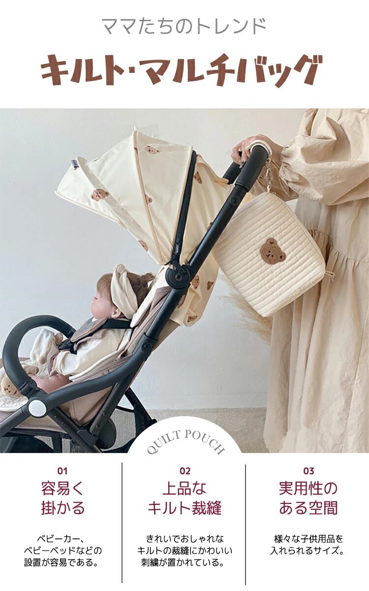 おむつポーチ オムツポーチ ショルダー おむつケース おしり拭き おしりふき マルチポーチ オムツ入れ ポーチ 旅行 バッグ コンパクト トラベルポーチ ヌビバッグ キルト ポーチ キルティング 韓国 キッズ ベビー
