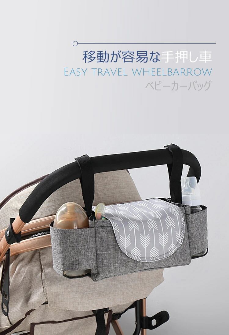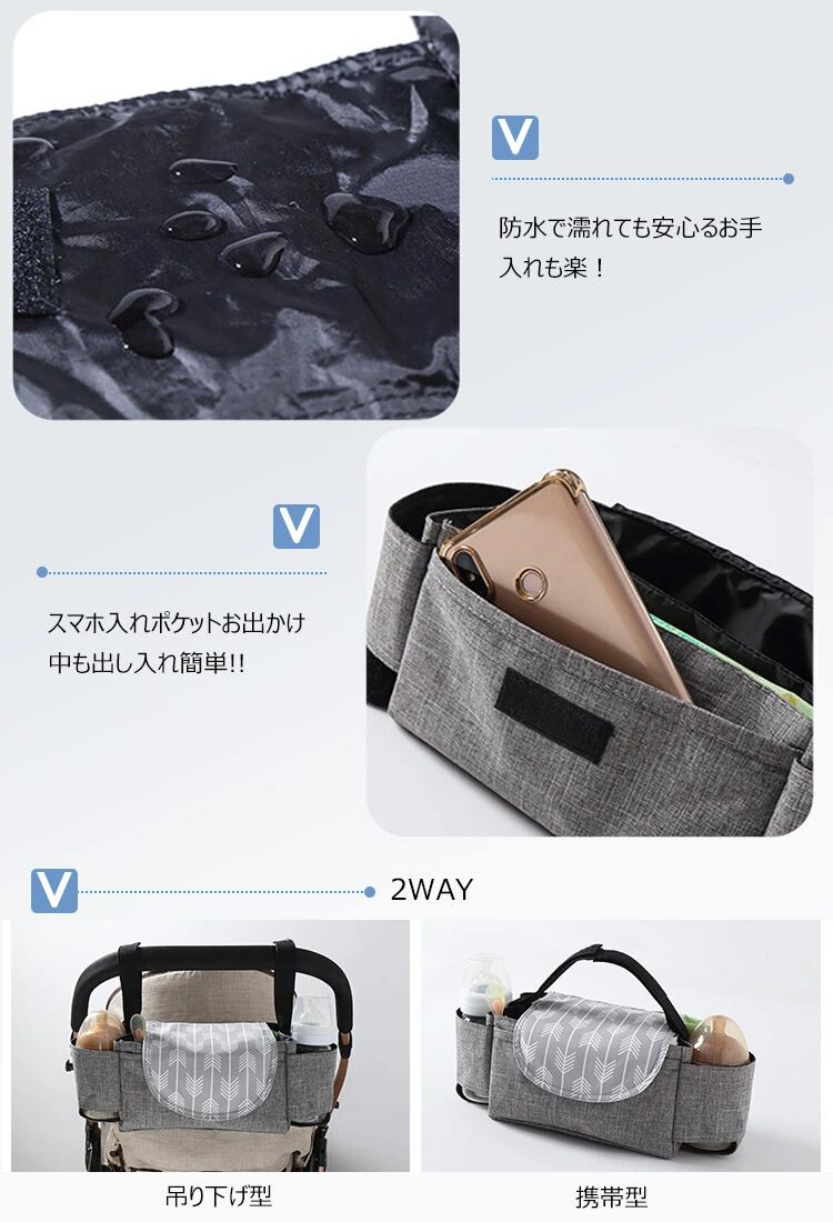 ベビーカーバッグ ベビーカー用バッグ 小物入れ マザーズバッグ ベビーカー収納 ベビーカー用 収納 2way おしゃれ かわいい 折りたたみ ドリンクホルダー ポケット付き スマホ 哺乳瓶 ウェットティッシュ ガーゼ 鍵 多機能