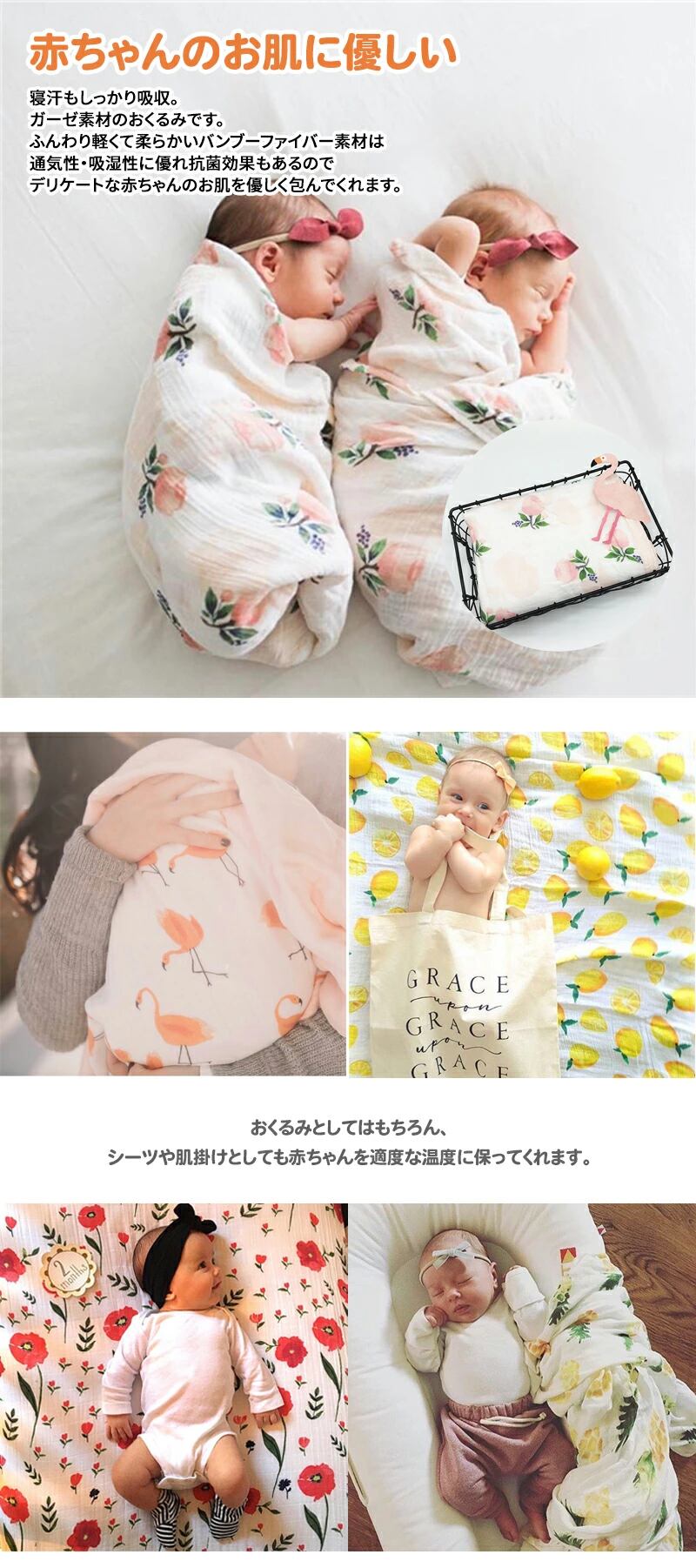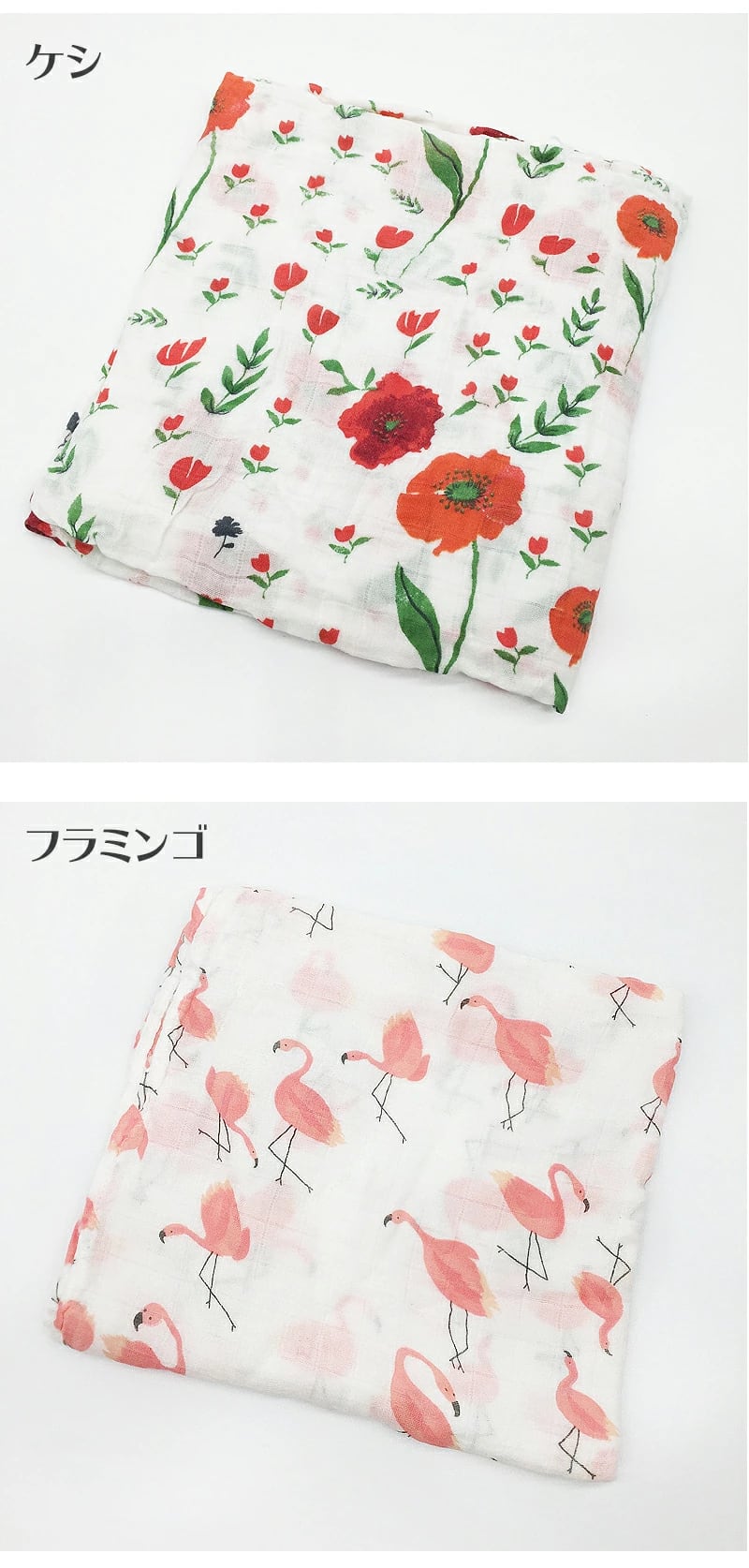 おくるみ 秋冬 ガーゼ タオル 新生児 赤ちゃん ベビー 女の子 男の子 ママ ブランケット スワドル 退院 お昼寝ケット コットン 薄手 大判 110cm×120cm 通気性 フラミンゴ ピンクローズ レモン パイナップル 花柄 くま 恐竜 可愛い 出産祝い ギフト